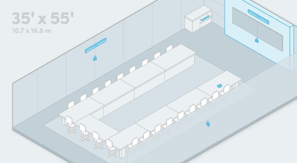 Our HDL410 system offers full-room audio coverage in a variety of room types up to 35' x 55' (10.7 x 16.8 m). Plus, our camera zones feature lets you automatically switch up to three cameras, making it simple to get great video coverage.