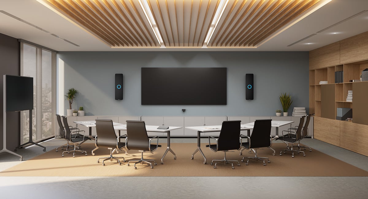 Our wall-mounted bars combine speakers and microphones for rich, room-filling sound and exceptional mic pickup. They come in pairs for spatial audio.