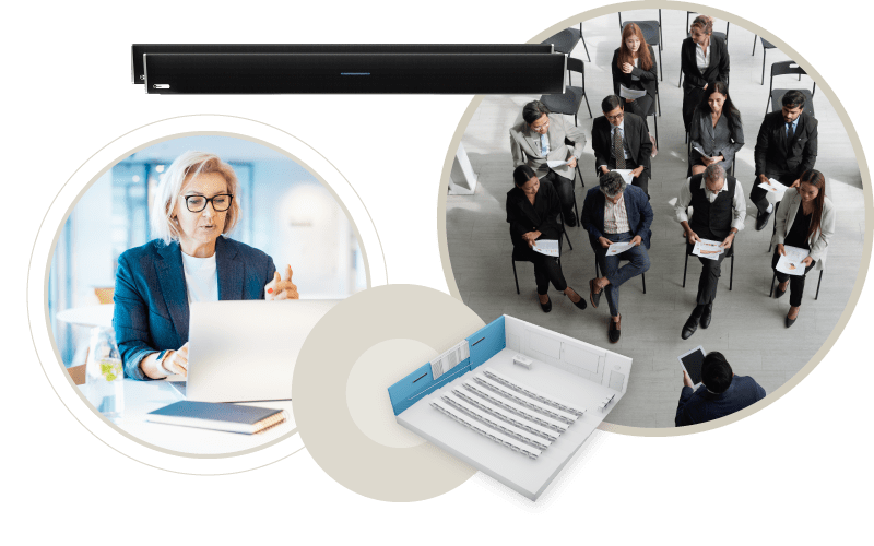 Choose audio solutions that bring people together — whether they’re connecting with colleagues, cross-functional teams or stakeholders. Our systems are easy to install and manage, reducing demands on IT. Plus, we offer TAA-compliant versions of our HDL pro series systems.