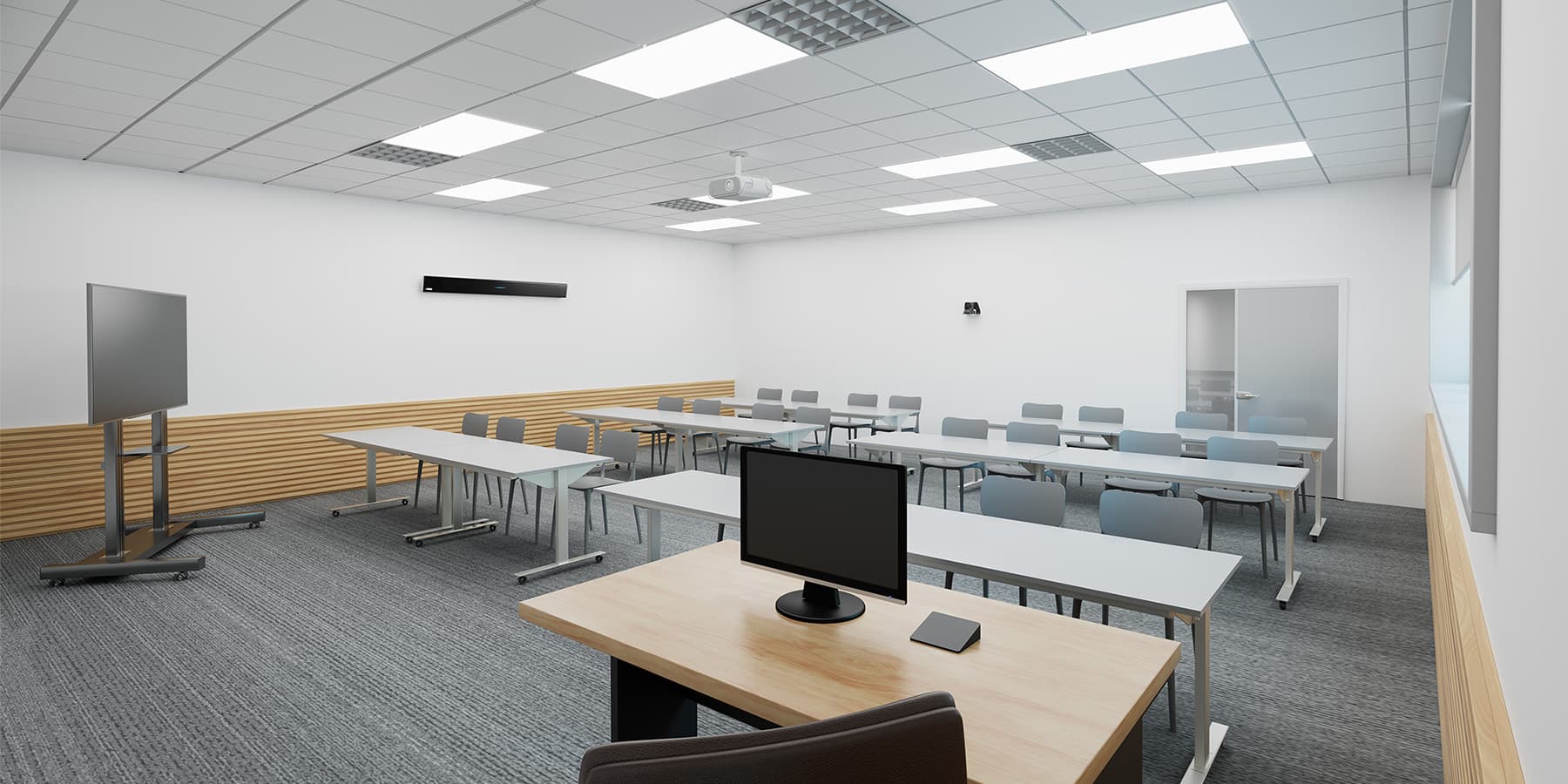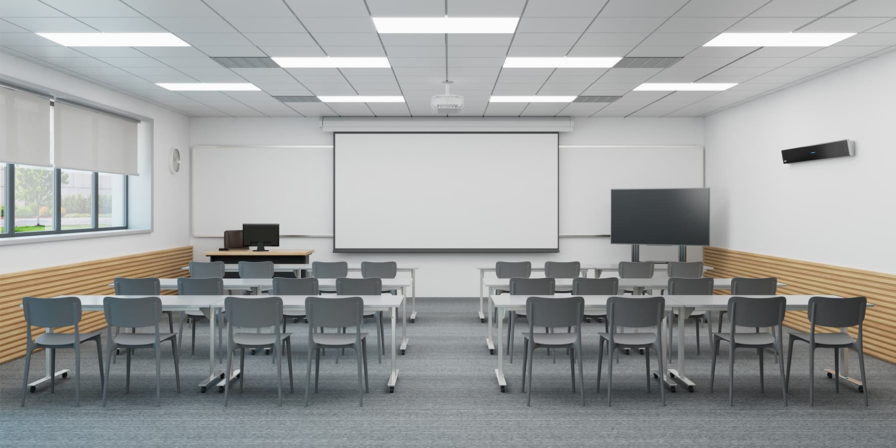 Build successful hybrid and HyFlex classrooms that help instructors stay focused on teaching and not on tech troubleshooting. Full-room microphone pickup, Adaptive Voice Amplification and automated camera switching all result in deeper engagement and learning.